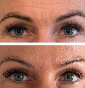 Behandling med botox mellem bryn, pande og ved øjenomgivelserne